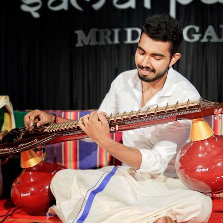 Bharadwaj holds a Master’s degree in Veena from RLV Music College, Tripunithura, and has had the privilege of training under the esteemed Sri A. Ananthapathmanabhan (AIR Retired). With over 8 years of professional experience, he has performed at prestigious cultural festivals and venues across Mumbai, Chennai, Guruvayur, Thanjavur, and Tirupati. His expertise extends beyond the stage, as he has also contributed to the film industry by assisting a music director with Veena and Mridangam in two movies.